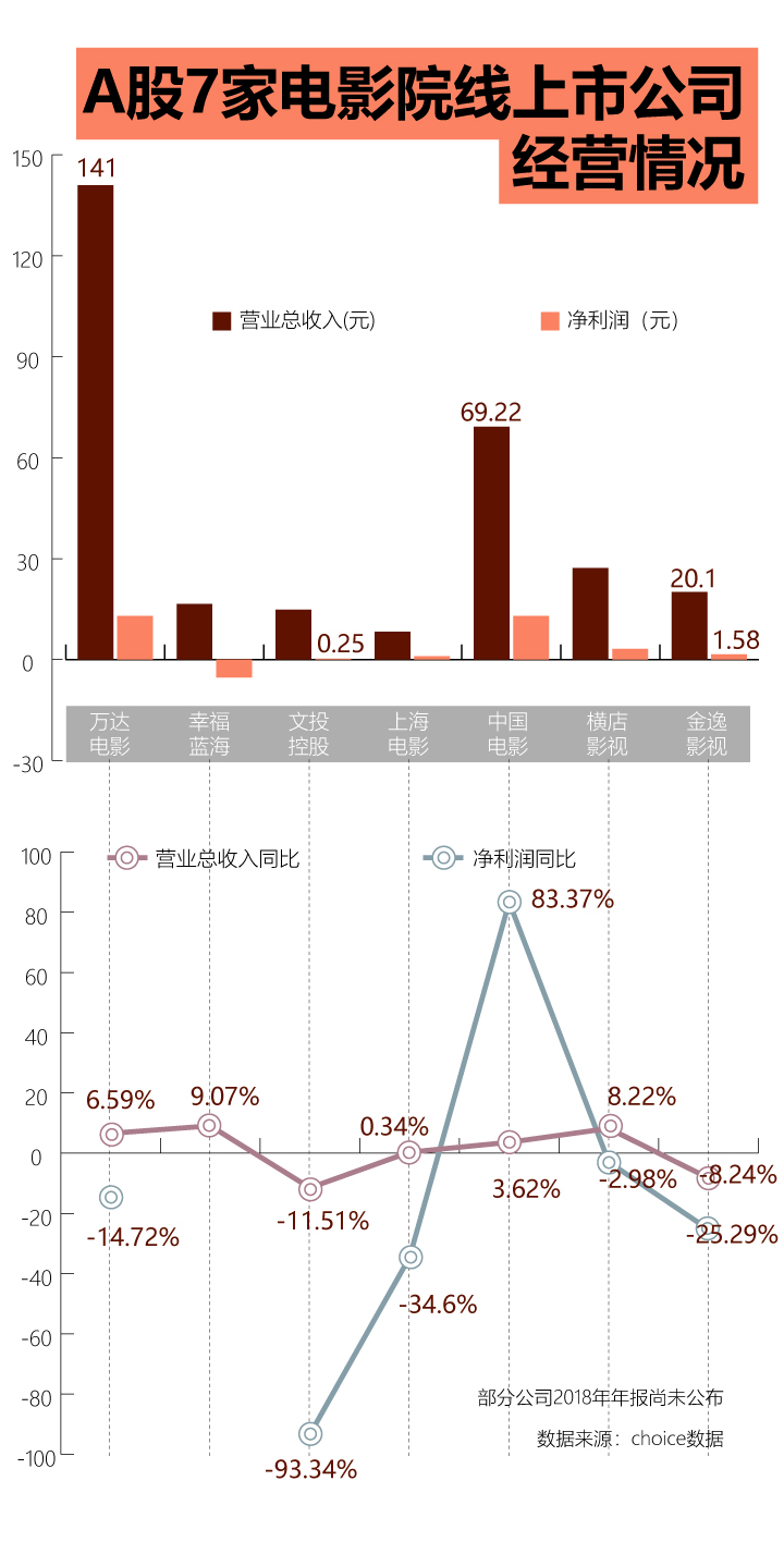 观察A股上市的7家院线公司显示,2018年整体增速放缓,多家公司净利润下滑。上市院线公司日子都不好过,其他影院也好不到哪儿去。