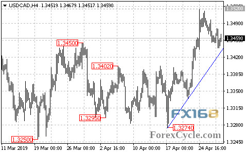 (美元/加元4小时图 来源:forexcycle、FX168财经网)