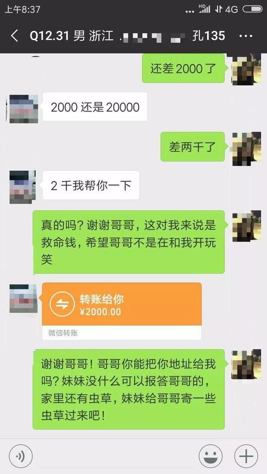 一开始,小宋真的以为自己在做销售虫草的微商生意,后来看到钟某教她的一系列话术,渐渐意识到自己是在骗人,“老板和我说没事的,他会给发2000元以上的顾客寄冬虫夏草,我就想着这样应该没问题,就坚持做到了寒假结束。”寒假结束,小宋如愿拿到了5000元左右的工资。