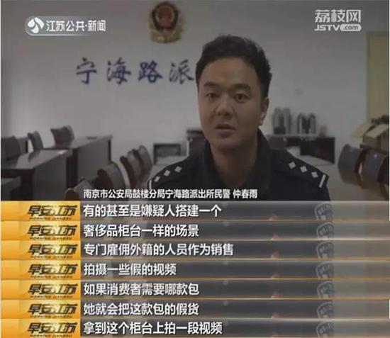 民警介绍,马某等嫌疑人会搭建一个奢侈品柜台,专门雇佣外籍人员作为销售,拍摄一些假的视频,“消费者需要哪款包,她就会把这款包的假货,拿到这个柜台上拍一段视频。”