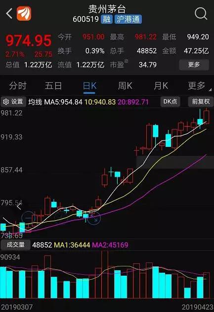 此外,贵州茅台在盘中再次创下历史性高点,其股价一度达到981.22元,距离千元仅一步之遥。