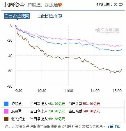 4月23日,北向资金净流出近60亿元。4月份以来,北向资金净流出额已超过百亿元。
