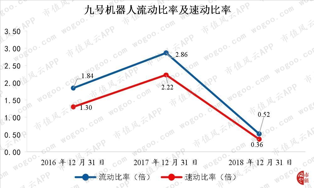 2016年至2018年,公司的流动比率分别为1.84倍、2.86倍、0.52倍,速动比率分别为1.30倍、2.22倍、0.36倍,近三年均呈现先扬后抑的变化。