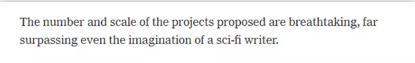 “‘一带一路’倡议的项目数量和规模令人吃惊,远远超出了科幻作家的想象。”