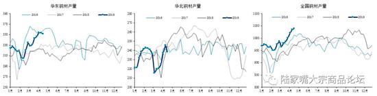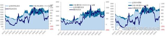 利润:本周热轧、冷轧、螺纹中厚板吨毛利分别为554元(环比-23)、153元(环比-26)、843元(环比-32)、404元(环比-23)。注:为了衡量及时的钢材和原料价格变动影响,所以利润均不考虑原料库存的影响,且不考虑钒对螺纹利润的影响