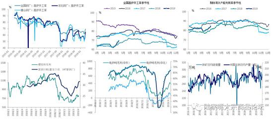 库存:本周总库存、厂库和社库分别为:1720.2万吨(-67.0万吨)、446.5万吨(-5.8万吨)和1273.6万吨(-61.2万吨)。分品种看,螺纹-41.7万吨,线材-20.8万吨,热卷和中厚板分别-3.4万吨和-2.3万吨。库存同比低了200万吨,去库速度同比慢了70万吨,去库速度降速明显。
