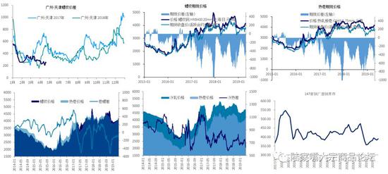 价格:本周南北螺纹价差250元(维持),今年的北材南下节奏较为混乱,从去年11月开始北材南下体量经历了提前启动-提前结束-节日期间爆发的过程,节前市场预期的转暖之间导致了北方钢材南下从而导致了冬季冬储体量的恶性回补。吨螺纹期货周-34元,现货-30元,贴水528元(扩大40元),吨热卷期货周-7元,现货+10元,贴水491元(扩大7元);卷螺差-127元(倒挂幅度扩大5元);冷热价差610元(扩大24)。唐山的汇总废钢价格达到2465元(+40),短期看由于钢厂阶段性补库完成,废钢价格小幅回调,长期看,废钢偏紧格局尚未本质改变,废钢依旧将偏强运行。