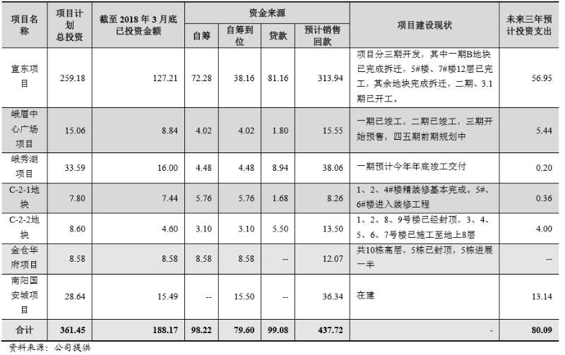 截至2018年3月底,中信国安集团旗下房地产在建项目情况