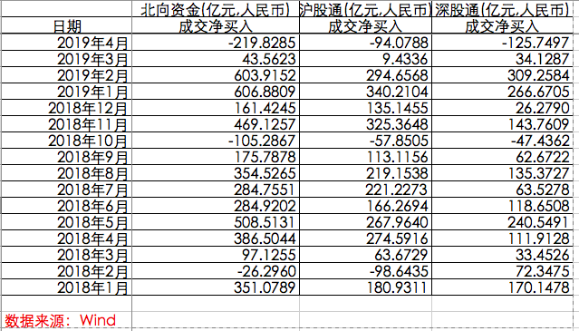 至此,4月22日至4月26日这一周,沪深股通合计净流出127.72亿元。数据显示,自沪股通开通以来,单周净流出额超过100亿元共计出现过5次。其中有2次都出现在2019年4月,除本周外,另一次为4月8日至4月12日的那一周,净流出额为129.01亿元。分别位居单周净流出额排名的第四位和第三位。而净流出额最高的单周为2015年7月6日至7月10日,当周北向资金净流出额高达371.15亿元。