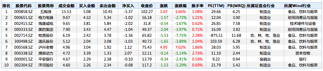 伊利股份(600887)、格力电器(000651)、海康威视(002415)、美的集团(000333)等多只白马股均被北向资金抛售。