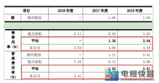 报告期内,该公司的销售费用率分别为4.18%、4.9%和3.54%,比行业平均高出1-3个百分点;同期管理费用分别为6.04%、4.43%和3.41%,也比行业平均高出1-2个百分点。