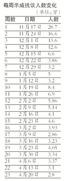 社科院欧洲所研究员彭姝祎则表示,“黄马甲运动”事实上反映了法国民众普遍的不满心理,这个不满是对法国现状的不满,同时也是对马克龙改革的不满。彭姝祎认为,法国社会其实存在结构性矛盾,不同的群体有不同的诉求,因此虽然“黄马甲运动”持续这么久,但并不是每一次的游行示威都是同一批人,许多人一旦有了不满就会走上街头进行抗议,因此短期内“黄马甲运动”不会停止。
