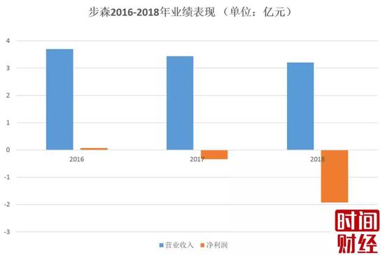 根据2018年年度报告,2018年营业收入3.2亿元,同比减少6.99%,归属于上市公司股东的净亏损为1.93亿元,同比亏损扩大470.36%,而在2016年与2017年,步森股份营业收入为3.7亿元与3.44亿元。归属于上市公司股东的净利润分别为659.96万元、-3380.7万元。财报显示,步森股份在2017年由盈转亏,且在2018年持续扩大。