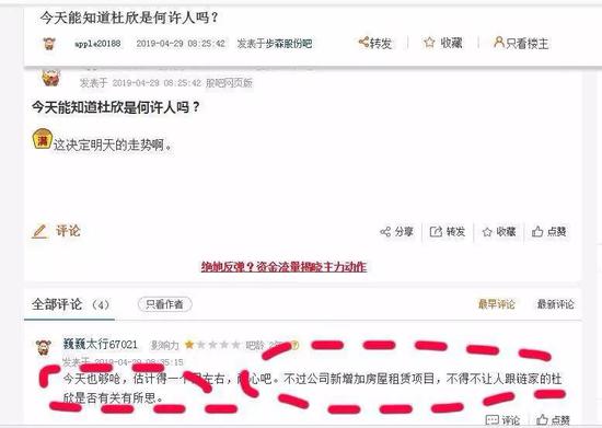 在所有公开资料都没法查到杜欣是谁的情况下,只能借助东方财富网股吧股民的力。果然,在股吧里找到了各种关于“杜欣是谁”的猜测。而这背后的原因不仅仅是八卦,正如股民所说,杜欣是谁会决定“明天的股价”。