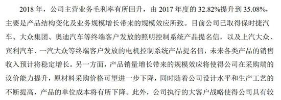关于2018年毛利率回升原因,科博达在招股书中也作出解释: