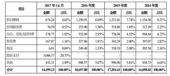 通常而言,不同的增资价格会影响公司后期进行股份支付会计处理时的对应金额,进而影响到公司当期及未来几期利润。在2017版招股书中,公司称,“根据员工持股平台合伙协议的 约定,相应计算的 2017 年 1至6 月摊销股份支付金额为3006.37 万元,计入当期的管理费用”。