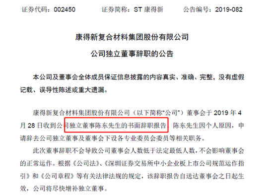此外,在发布完上述意见之后,独董陈东提交了辞职报告。