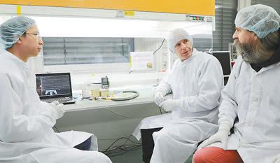 团队负责人罗伯特(中)、仪器主管于佳(左)和工程师史蒂芬正在讨论相关研究内容。记者 李 强摄 图自人民日报