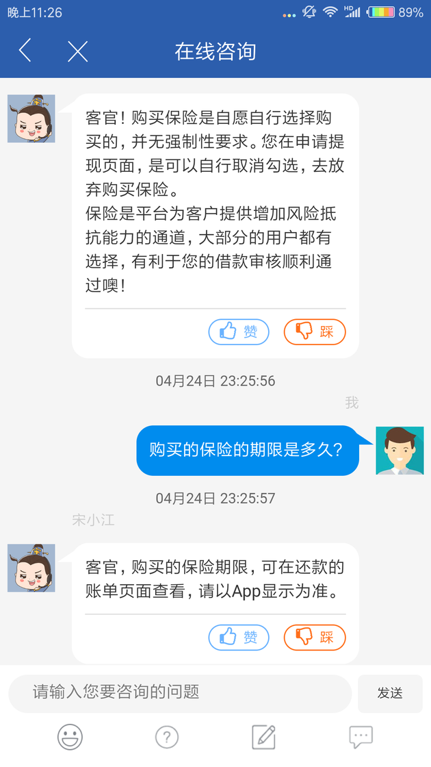 而对于引入保险计划,及贷客服表示,保险模式是指平台引入为用户增加风险抵抗力的商品,用户在风控评分不足时,可通过购买保险来增加自己的风险抵抗力,从而提升放款审批的成功率。