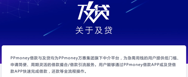 天价保险、超高年化利率,这个及贷平台究竟是何方神圣?公开资料显示,及贷由深圳万惠金融服务有限公司开发运营。据及贷官网介绍,及贷为PPmoney万惠集团旗下中介平台:
