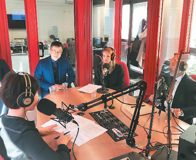 2019年2月28日,孙运之(左二)在意大利“华夏之声”中文电台演播室录制访谈节目。