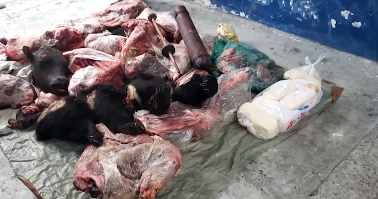 4月30日,四川阿坝州,小金县警方在例行检查中发现一外地车辆有躲避行为,进一步盘查发现车内有大量牦牛肉和四只熊掌。目前车内四名男子因涉嫌贩杀保护动物被警方控制。