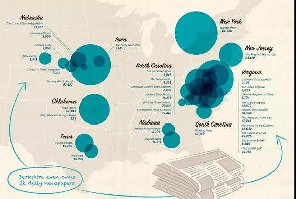 伯克希尔哈撒韦还拥有32份日报,其中包括《奥马哈世界先驱报》(Omaha World-Herald)等。