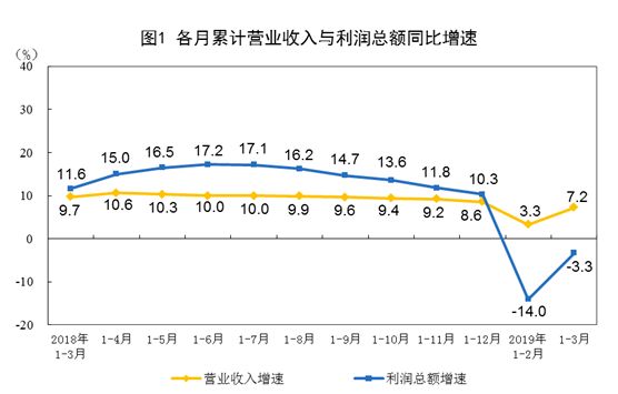 国家统计局4月27日发布的工业企业财务数据显示,1至3月份,全国规模以上工业企业利润总额同比下降3.3%,降幅较1至2月份大幅收窄10.7个百分点。