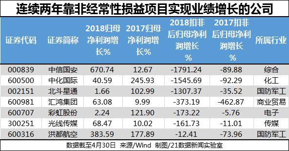 21数据新闻实验室研究发现,2018年度,有291家公司靠非经常性损益实现业绩“伪增长”,挤掉“水分”后净利润就为负了,此外,还有89家公司靠非经常性损益实现扭亏。