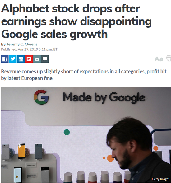 谷歌母公司Alphabet公布的营收低于分析师对其2019年第一季度的预期。盘后,该股大跌5.6%。