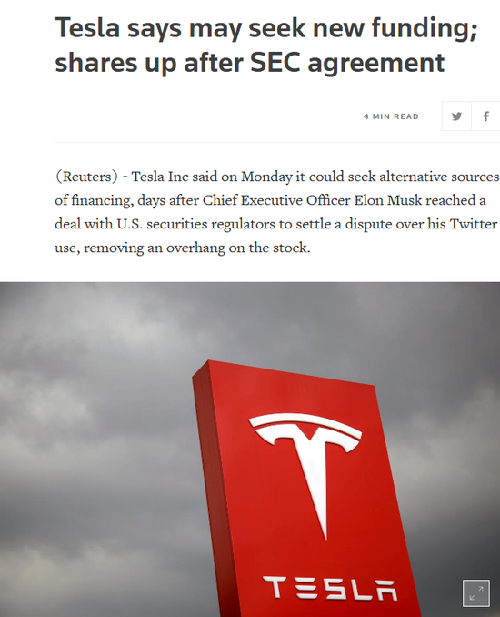 3、路透社头条 | 与SEC达成协议后 特斯拉或将再发“垃圾债”来筹集资金